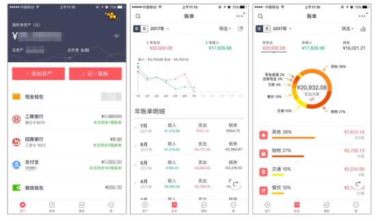 可以看出,贝多多更侧重于投资理财,可记录几乎所有P2P网贷投资平台、信用卡、基金、股票、房贷等投资资产,适合深度投资用户。相对来说,对刚入门的理财小白和轻度全资产管理者来说不是太实用,生活记账功能也略有欠缺。 财鱼管家的记账页面,涵盖了基金、股票、银行理财产品、P2P、银行卡、信用卡、住房公积金等各类资产类别的模版,分类较为详细,不过在个人财务结构的深入分析和财富配置导向方面,依然专业化欠缺,对于深度全资产管理用户来说可能吸引力不够。 网易有钱在资产管理过程中,可自动记账。这让支付宝、微信等端口的收入、支出等资产流动能自动、高效的完成,不会遗漏,也不会因资产管理而耗费太多时间和精力。网易有钱还有还款日提醒等功能,便捷而贴心。 另外,网易有钱生活记账中,每一个大类下都涵盖了许多小的分类,比如支出板块有餐饮、零食烟酒、购物、住房、交通、娱乐、文教、汽车、育儿、通讯等多种主流消费支出类别,大多数时候不需要再手动写入,非常便捷省时,满足人们利用碎片化时间进行资产管理的需求。